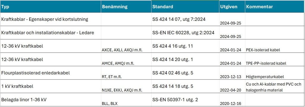 - TK 20 (Kraftkablar och installationskablar)